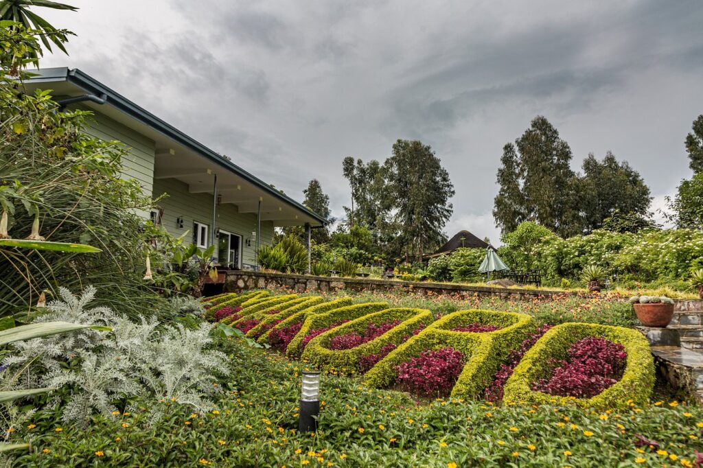Amakoro Songa Lodge is situated in a beautiful community near Kinigi, exemplifying a true amalgamation of conservation and tourism. The lodge derives its name from the black volcanic rocks that define this hilly region of Rwanda, which is inhabited by the Mountain Gorillas. The lodge is situated on a seven-acre expanse featuring meticulously maintained lawns, encircled by the Muhabura, Gahinga, and Sabinyo volcanic mountains.